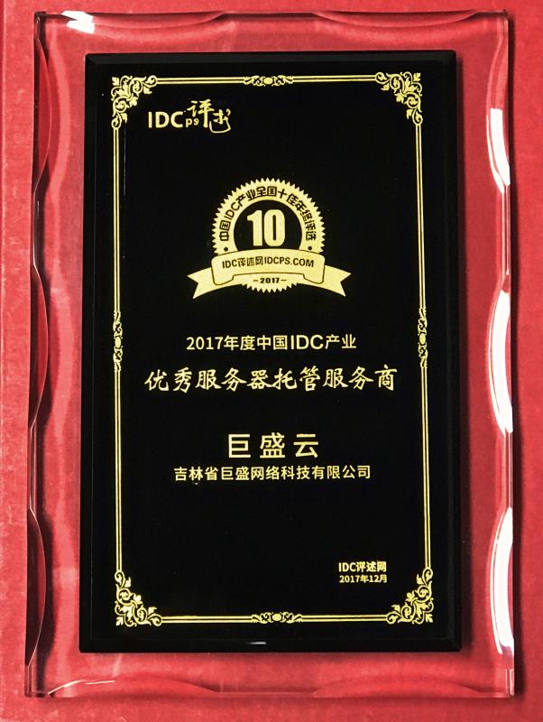 2017年全國IDC服務商50強及全國各地優秀IDC服務商名單也正式揭曉——吉林省巨盛網絡科技有限公司(巨盛云)名列全國第40名,憑借在云主機和服務器托管服務上出色表現,巨盛云一舉摘得“優秀服務器托管服務商”獎項,并受到了業界人士及廣大用戶的一致認可。